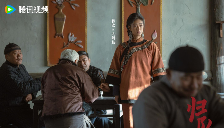 蒋欣塑造的大阔枝,外貌出众,一双眼睛似会说话,不少人会特意绕远路来酒馆只为看她一眼。